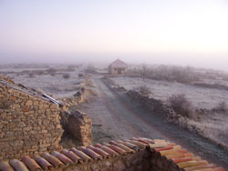 Es la Navidad, y en Pinilla los días, tras diluirse la niebla mañanera, son despejados y de azul intenso con lo que luce el sol tras la helada de la noche. Sale humo de encina de las cinco chimeneas que en estas fechas proclaman cierta vida en el pueblo. Por lo demás, pocas novedades. Mal año para las setas. Por lo visto, en este ejercicio, no tocan obras públicas, que al parecer corresponde reparar las calles de Jodra de Cardos. Los hermanos Bartolomé se mueven sin parar con los tractores y regresan, avanzada la noche, de las tareas del campo. Este año mi sobrino Héctor acude con su hija Zoe, que a sus ocho meses aporta su felicidad y alegría a este casi despueblo, como un atisbo de esperanza ante un futuro que deseamos sea mejor. Se encuentra uno confortable en el interior de las casas, con la potente estufa y la calefacción a tope, mirando el limpio horizonte, hoy maculado por la presencia, aunque lejana, de los molinillos de viento. ¿Qué sentirían nuestros abuelos si nos viesen dentro de lo que fueron sus casas, en Navidad, en mangas de camisa, al tiempo que nos comunicamos desde Pinilla con amigos que residen allende el océano?