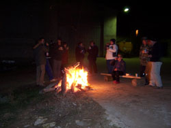 En otra noche José Luis enciende una hoguera junto al frontón, y tomando chocolate caliente, charlamos amistosamente al calor de las llamas, con el compromiso de continuar en años venideros con la ceremonia, y con la ilusión de coincidir con más gente.