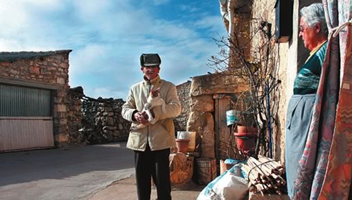 Sólo cuatro casas están habitadas durante todo el año. El dato lo aporta Bienvenido Negredo, que regresa a la suya con un hato de leña. Es uno de sus quehaceres diarios: cortar leña, pasear dos o tres kilómetros para mantenerse en forma, atender a los pavos y las gallinas, y, a sus 82 años, disfrutar de la paz y el aire puro del pueblo en compañía de su mujer. Bienvenido comenzó a trabajar en 1936, recién estallada la Guerra. Tenía once años. Su madre murió y él y sus cuatro hermanos tuvieron que buscarse la vida. «Ganarnos el currusco», puntualiza. Él pudo hacerlo en un caserío de Almazán, propiedad de un terrateniente de la zona. Allí se dedicó a cuidar vacas, bueyes y caballos. Con el tiempo volvió al pueblo, pero siempre supo que su destino estaba lejos de allí. Así fue. Aprobó unas oposiciones y trabajó toda su vida en la Renfe como obrero ferroviario, primero en Flis, Tarragona, y al poco tiempo en Casetas, Zaragoza, donde crió a su familia y vivió hasta su jubilación.